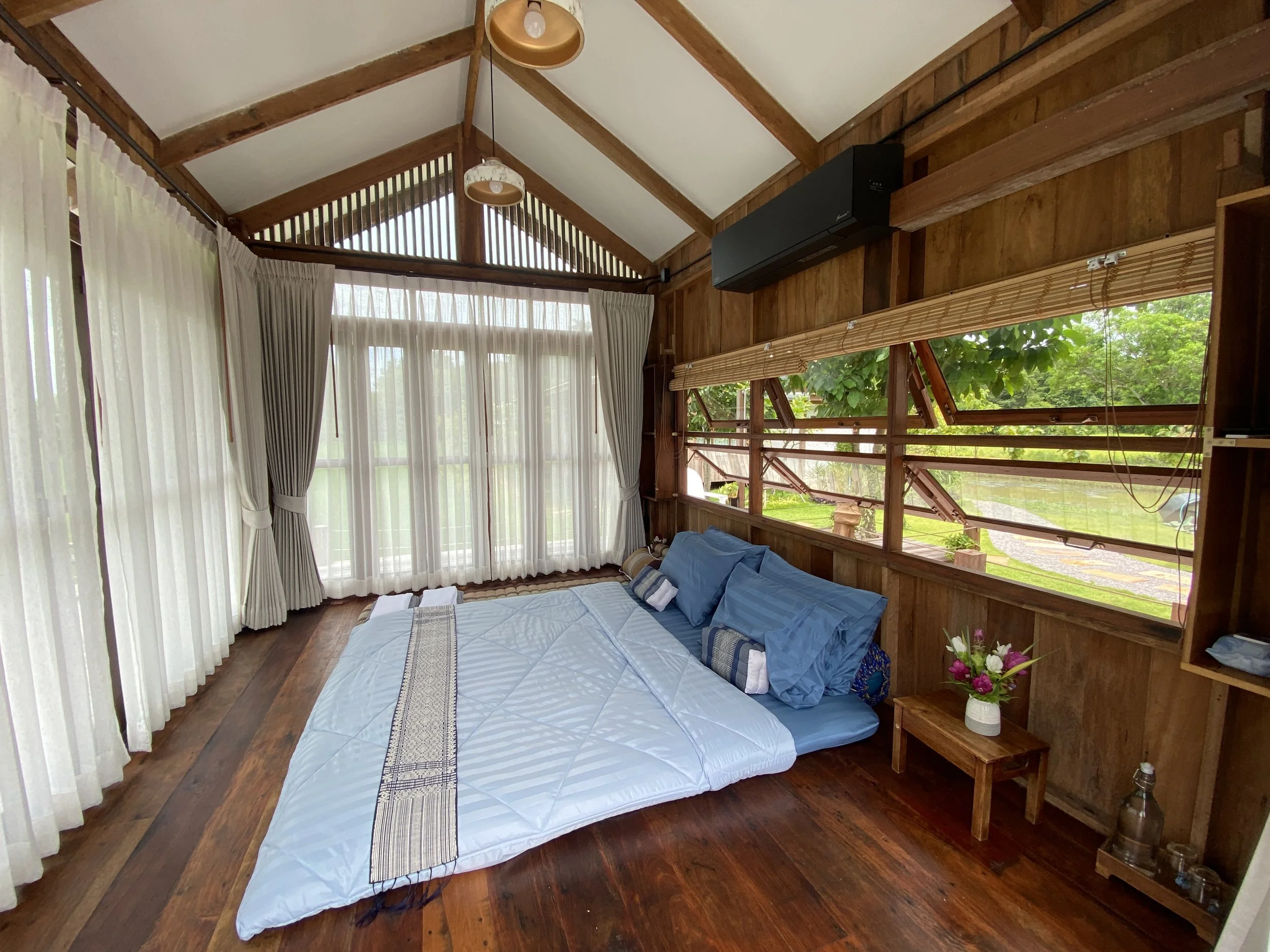 At CHANN JIVA, accommodations reflect the simplicity and soulfulness of Thai countryside living. Inspired by traditional Thai farm-stay structures, our wooden guest houses are thoughtfully designed for comfort, quietude, and connection to nature.